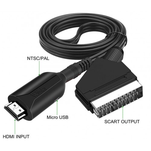- Cablul Adaptor HDMI la Scart este un convertor universal cu intrare digitală HDMI (60Hz) şi ieşire analogică Scart.