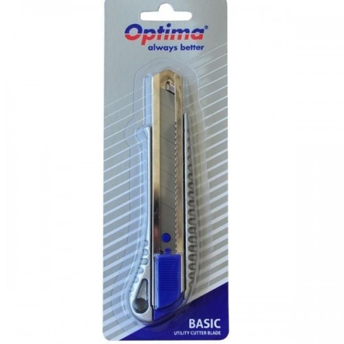 Cutterul este prevazut cu orificiu pentru agatare/ prindere, sina metalica in care culiseaza lama, sistem automat de blocare a lamei si lama din metal de 18 mm latime.